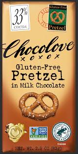 Sucre de canne, beurre de cacao, lait entier en poudre, pâte de cacao, bretzels sans gluten (farine de maïs, farine de riz, amidon de pomme de terre, huile de tournesol, sel, levure), lécithine de soja, extrait naturel de vanille.